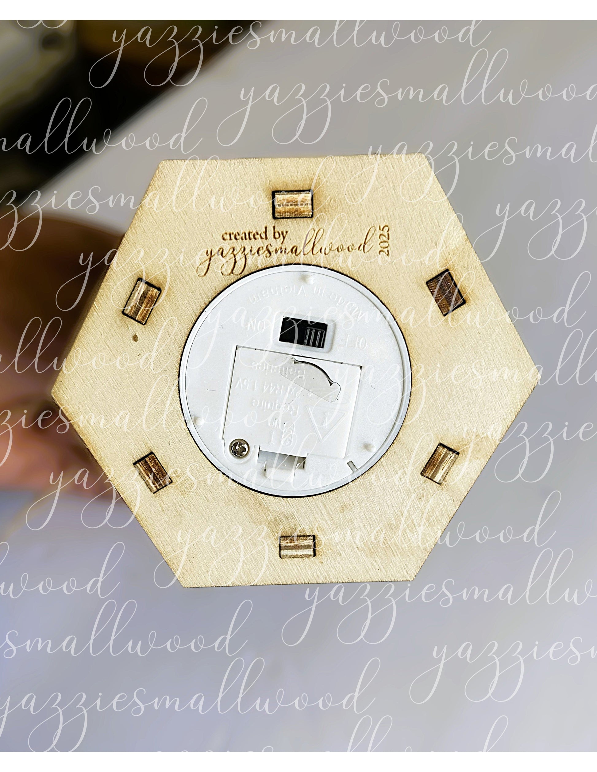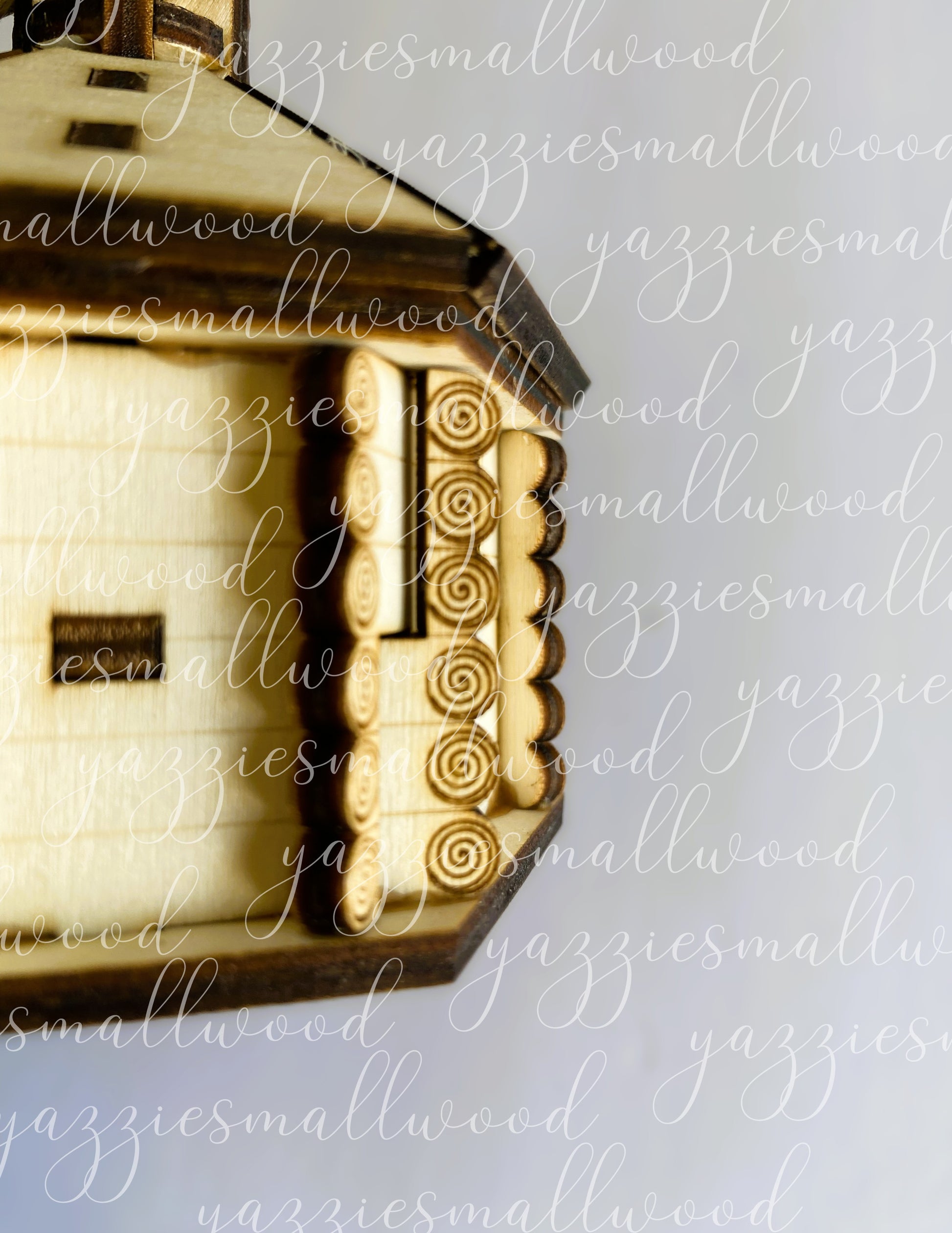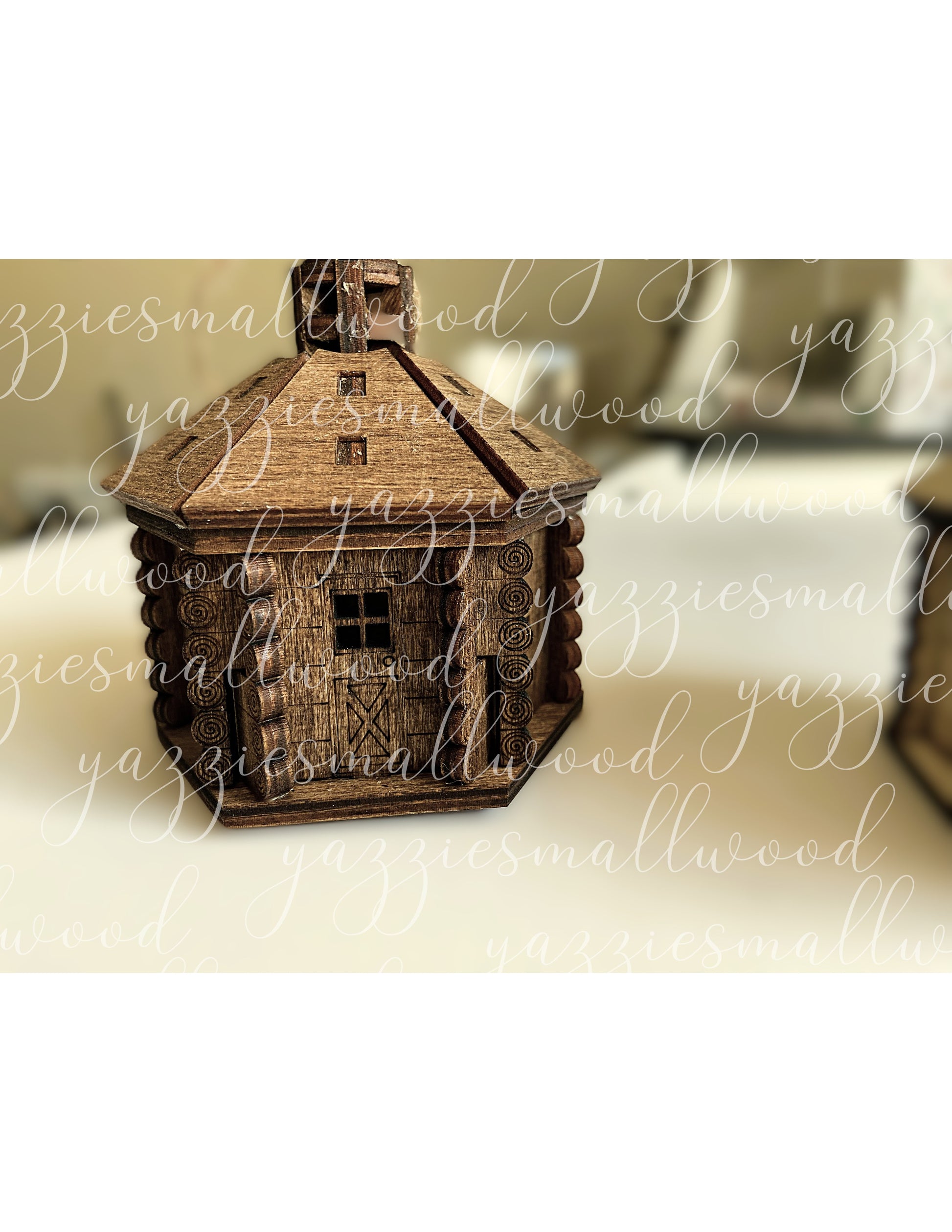 This finely laser-cut Navajo Hogan ornament presents the traditional female six-sided Hogan motif, meticulously crafted from plywood. Equipped with a tea light fueled by LR44 batteries and complemented by a twine hanger, it offers an elegant means of display. Measuring 3 inches in width and 3.5 inches in height, this exquisite piece imparts a refined touch of authentic Southwestern heritage and is thoughtfully packaged in a clear plastic box.